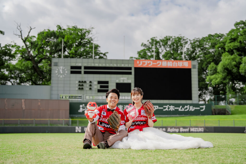 【1着目】藤崎台球場での1枚。かつて野球に打ち込んだ日々や、大切な思い出が詰まった場所で、特別な一枚を残せるロケーションです。広々としたグラウンドやスタンドを背景に、ウェディングドレス姿が印象的に映え、他にはないオリジナ […]