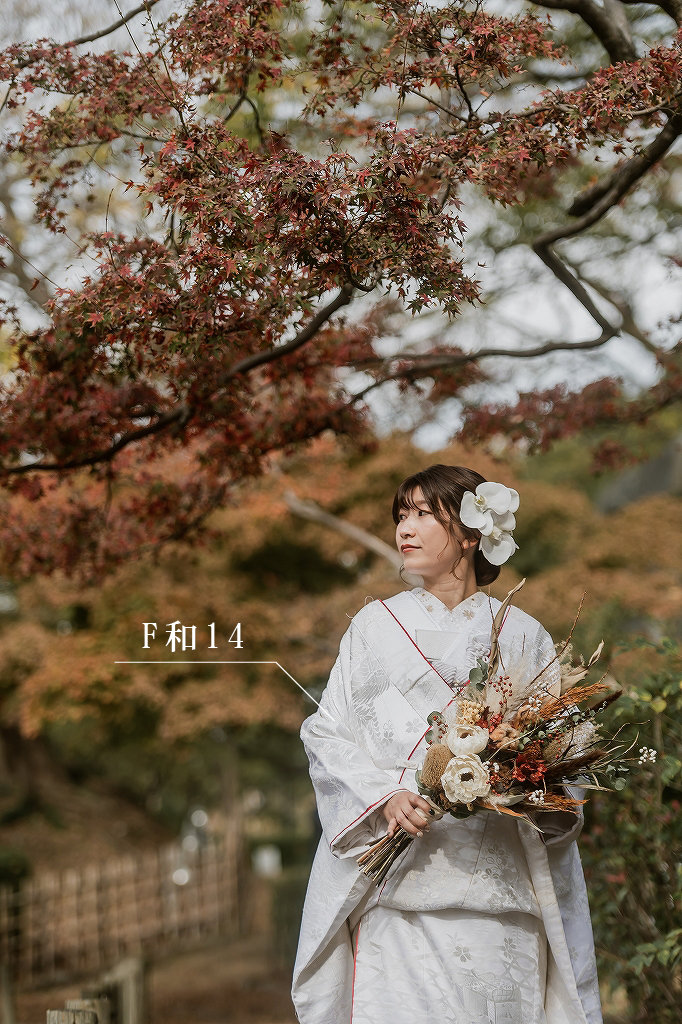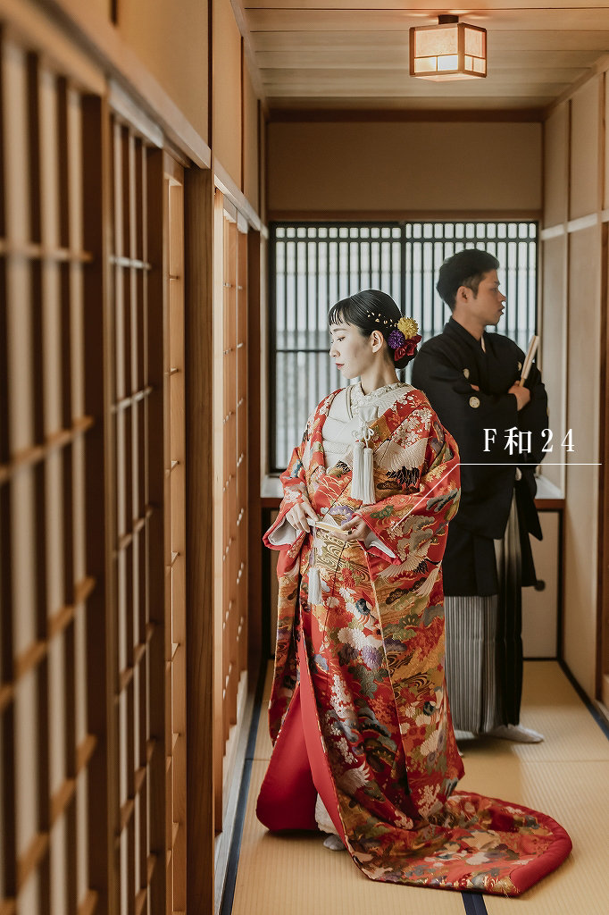 和装も洋装も両方の撮影が可能です。人気のプランは衣装も選び放題なので、4着(白無垢・色打掛・ウエディングドレス・カクテルドレス)選んで撮影されるお客様がほとんどです。衣装のグレードアップや衣装追加によるプラス料金もないので、低料金で4着着れるのが魅力です。