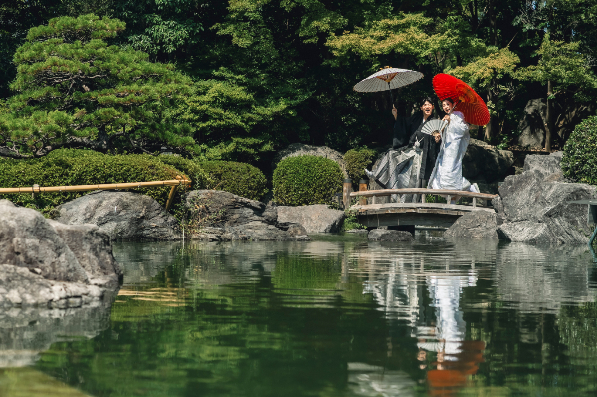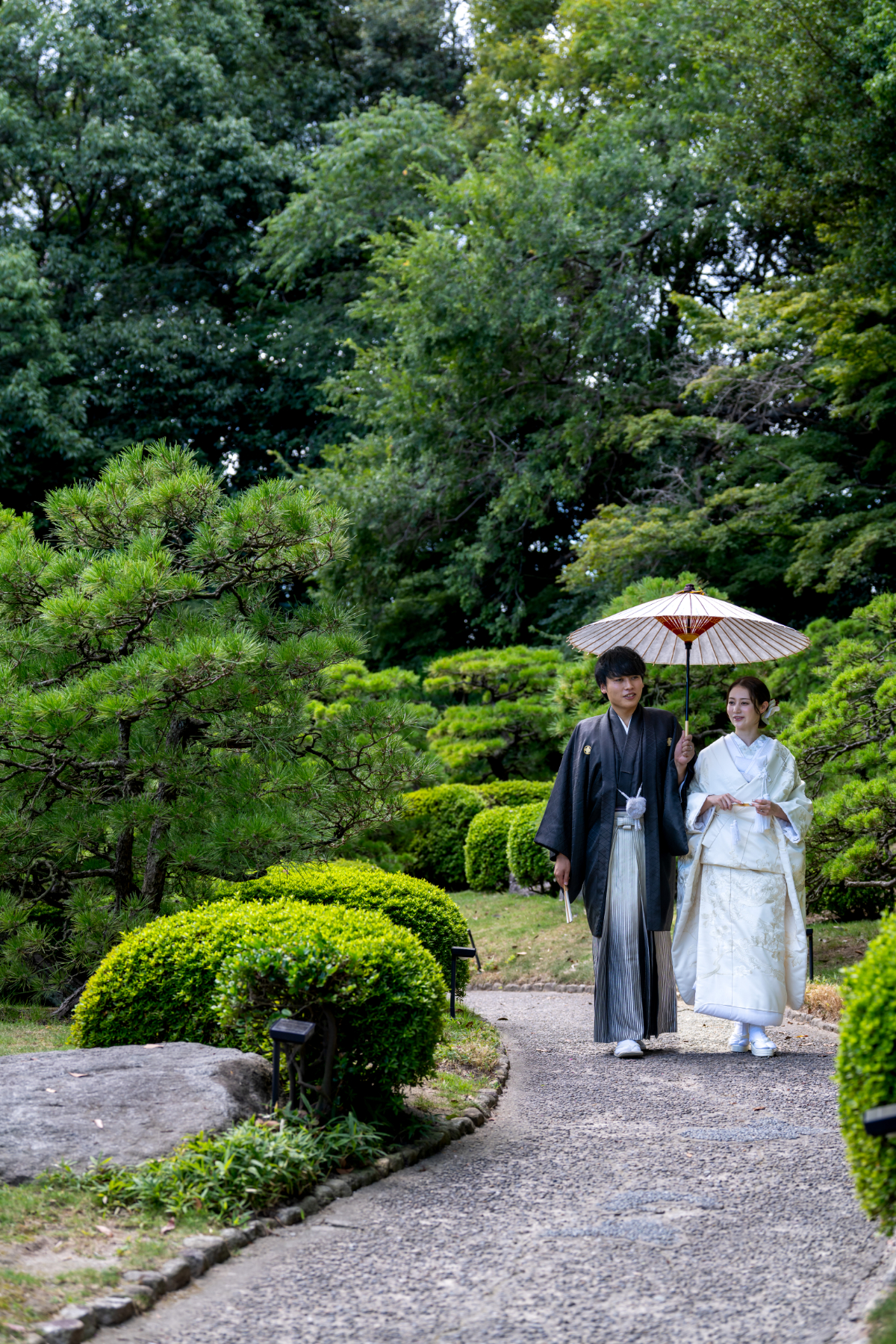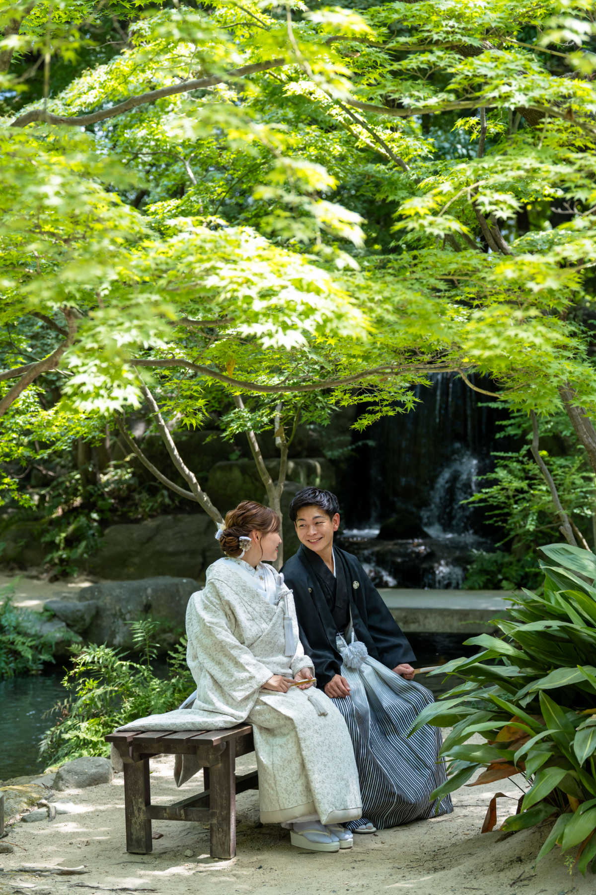 店舗へ集合頂き、1着目のヘアメイク・着付けを行います。準備ができ次第、事前に打ち合わせをした撮影スケジュールを元に、ロケーション撮影を行います。美容スタッフとカメラマンと撮影を楽しみながらお二人の魅力を引き出します。