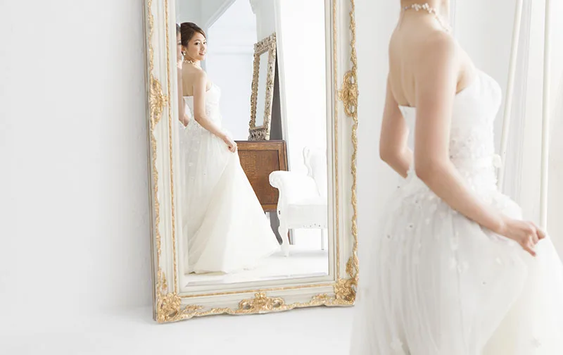 撮影当日にご来店いただく際は、新婦様はノーメイクでお願い致します。新郎様は髪の毛のスタイリングもお控えください。すべて弊社スタッフが行います。