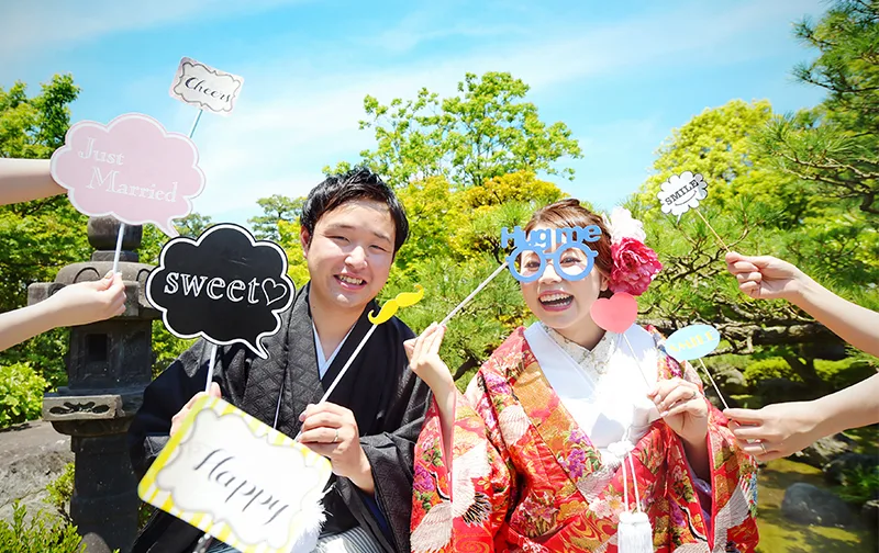 和装も洋装も着放題なので可能です。人気のプランは衣装も選び放題なので、4着(白無垢・色打掛・ウエディングドレス・カクテルドレス)選んで撮影されるお客様がほとんどです。衣装のグレードアップや衣装追加によるプラス料金もないので、低料金で4着着れるのが魅力です。