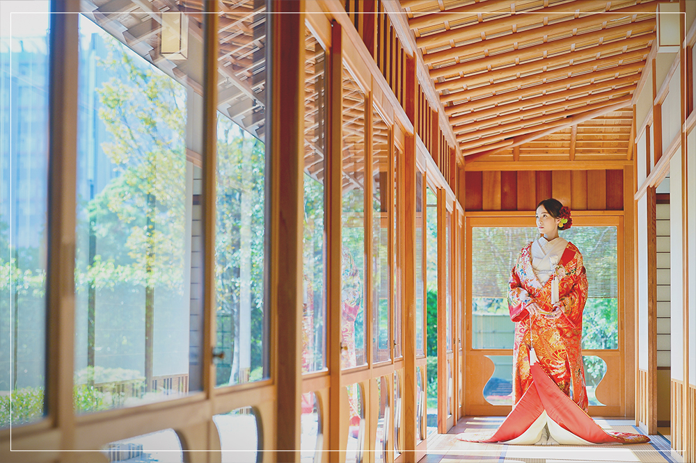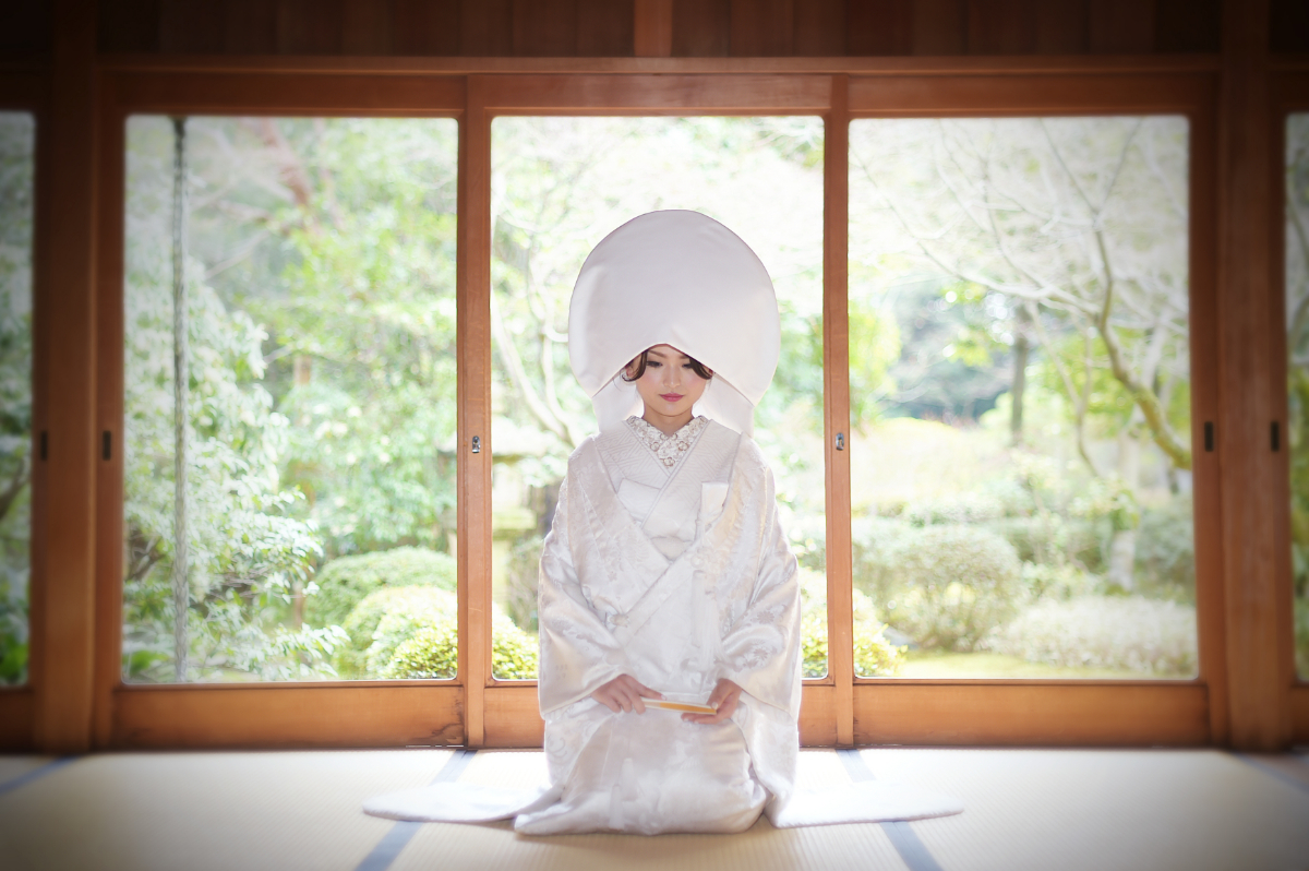 白無垢や色打掛を纏い、神社や庭園で日本らしい情景の中に溶け込めます。